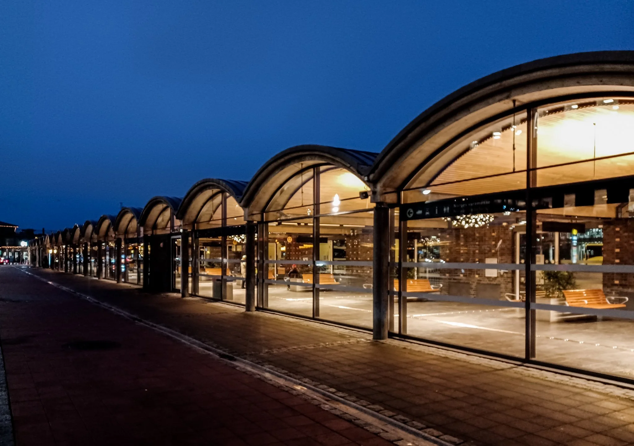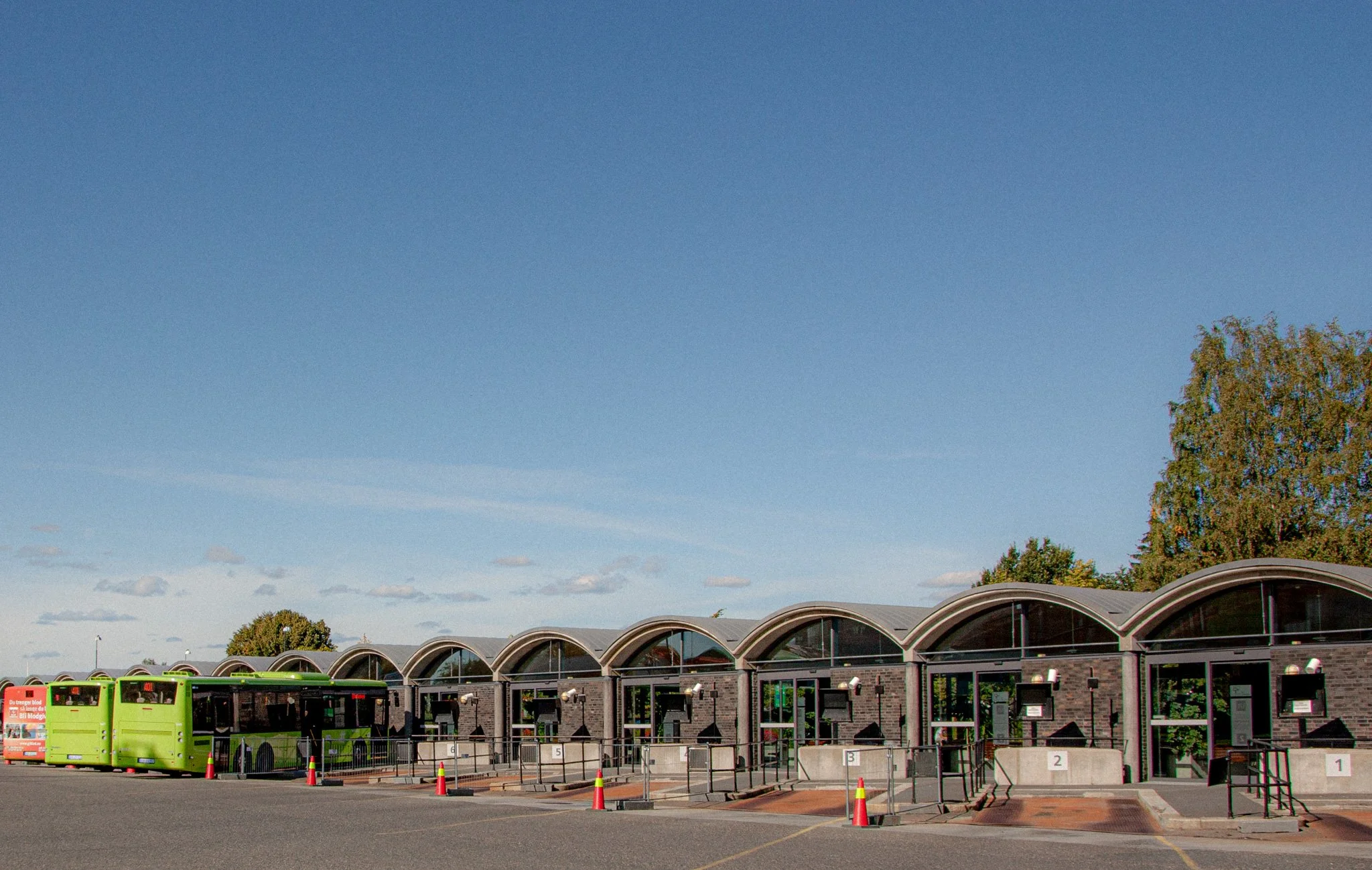 Busstasjonen er, i norsk sammenheng, gitt en eksepsjonell høy kvalitet i utforming og utførelse. De krumme og spennarmerte betongskallene - bygget som selvstendige, fleksible enheter - danner klassiske hvelv og skaper en rolig, nærmest malerisk stemning. Bygningen som et visuelt bindeledd mellom stasjonsområdet og rådhuset, henvender seg med åpne glassfelt sjenerøst til Jonas Lie gate, mot byen og forplassen.