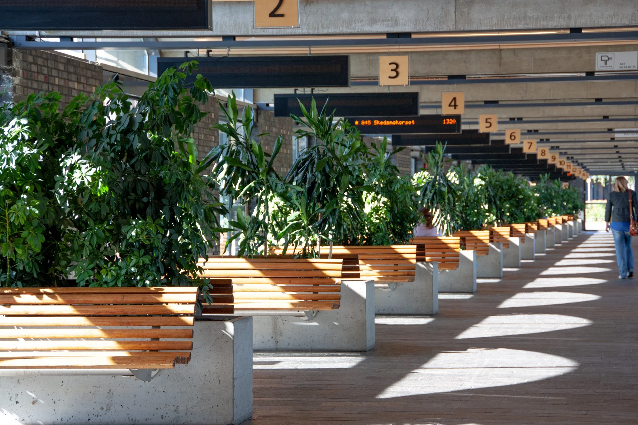 Kraftfulle takkonstruksjoner gir karakter til rommene i de to nye stasjonene. Begge er direkte fortolket og gitt form av trafikk funksjonen. Bussen har gitt dimensjon til betongskallene, toget og sporet til tunnelgjennomgangen og stasjonshallene.